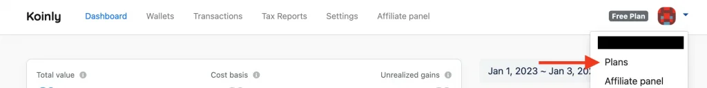 Koinly kann zunächst völlig kostenlos getestet werden und eignet sich auch hervorragend als kostenloser Portfolio-Tracker für deine Kryptowährungen. - Das passende Steuerpaket kann nach der Anmeldung unter “ Plans” gekauft werden.
