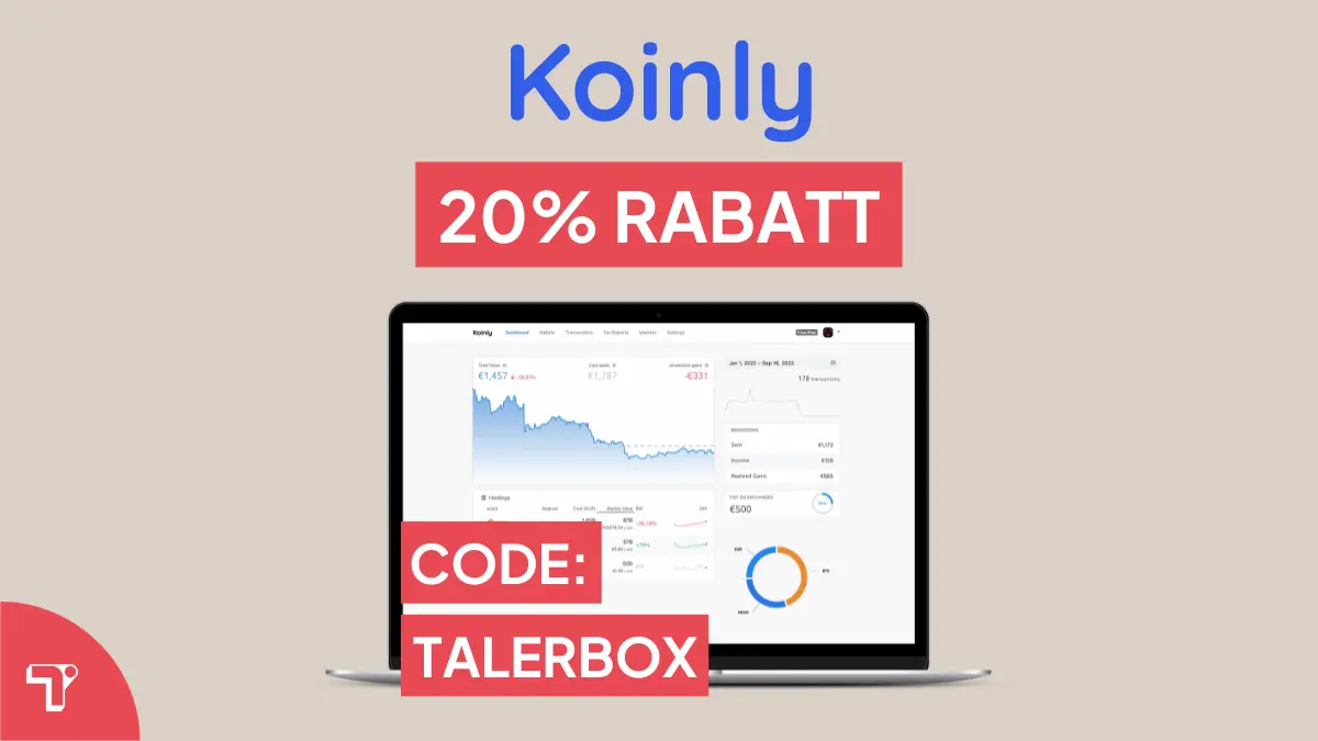 Spare jedes Jahr 20% Rabatt bei deiner Krypto-Steuererklärung und speichere dir den Koinly Rabatt-Code ab. Der Code „Talerbox“ gilt auch zukünftig für Neu- und Bestandskunden.