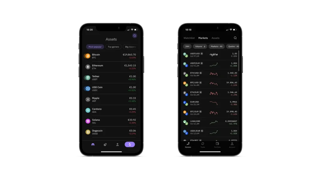 Für den Handel per Smartphone stehen dir 2 Apps im Appstore und Google Playstore zur Verfügung: Eine App für das klassische Kraken und eine Kraken Pro App für die professionelle Handelsoberfläche. Beide Apps bieten jeweils den vollen Funktionsumfang, den dir auch die Desktop-Version bietet.