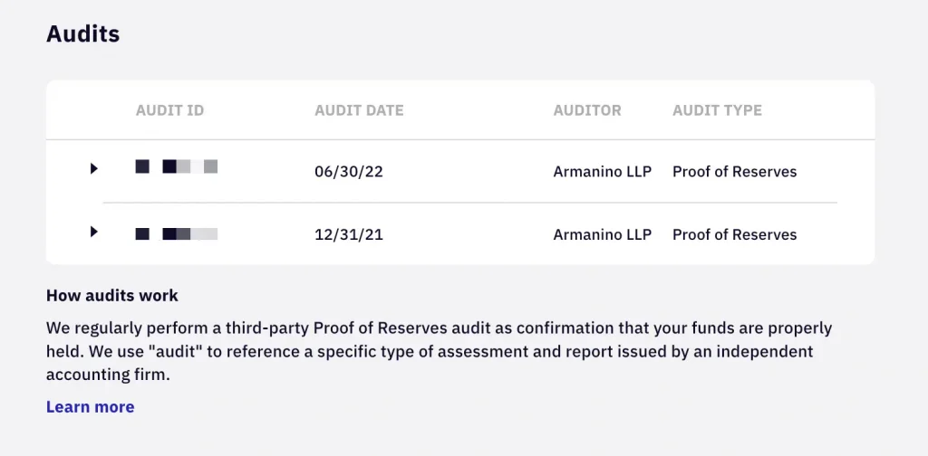 Kraken ist in den USA und Kanada reguliert und bietet als einzige uns bekannte Krypto-Börse einen sogenannten Proof of Reserves dessa eigenen Kraken-Accounts an. Die Überprüfung erfolgt halbjährlich und lässt sich im eigenen Account oder direkt auf der Seite des Wirtschaftsprüfers Armanino abrufen.