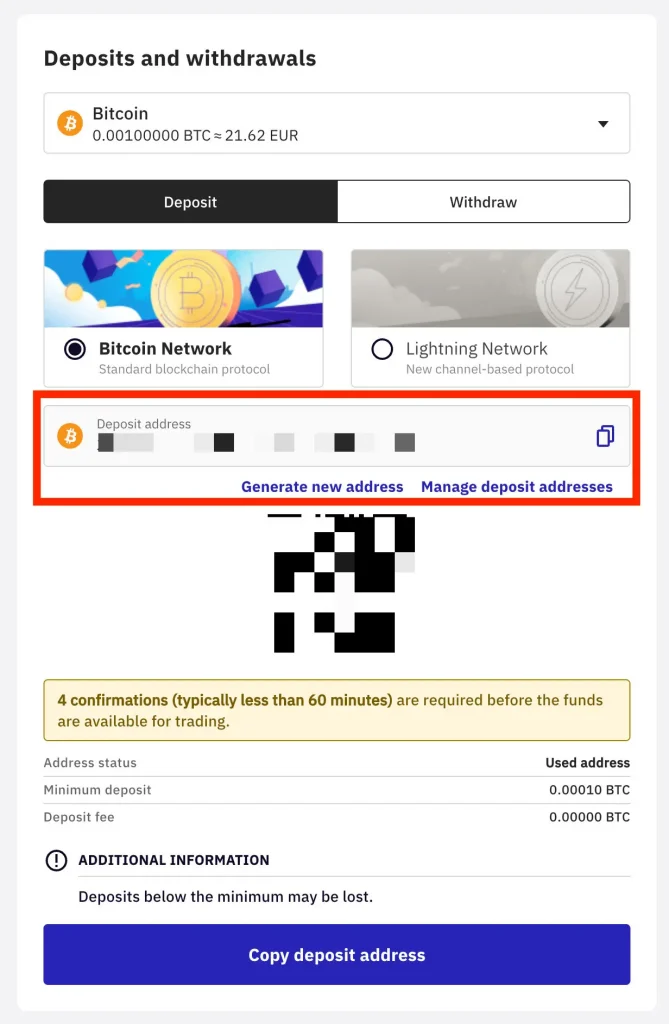- Die Auszahlung von Bitcoin ist über das Lightning-Netzwerk kostenlos möglich.
