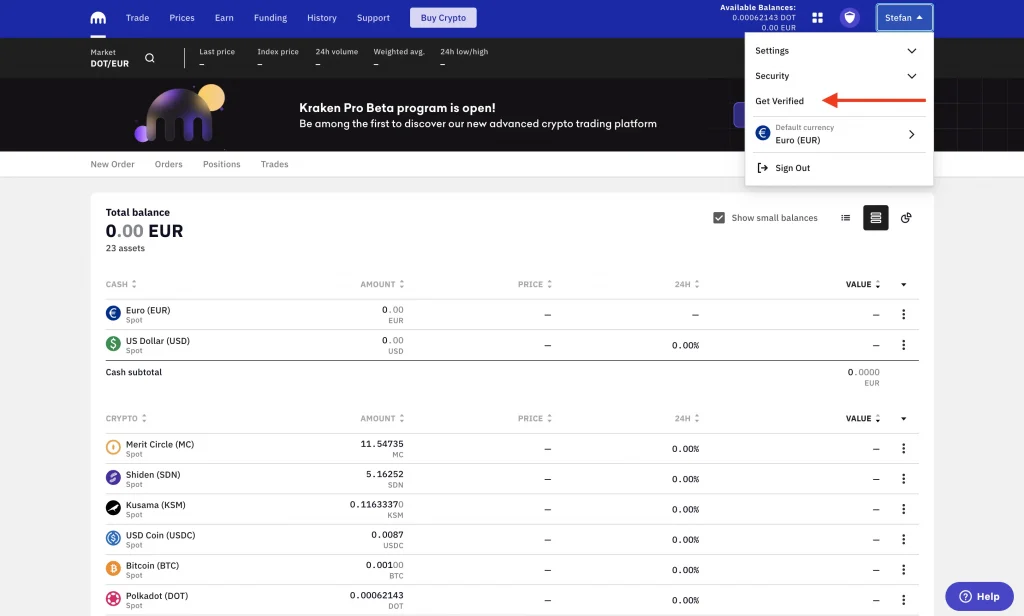 Schritt 1: Oben rechts auf deinen Namen klicken und “Get Verified” auswählen.