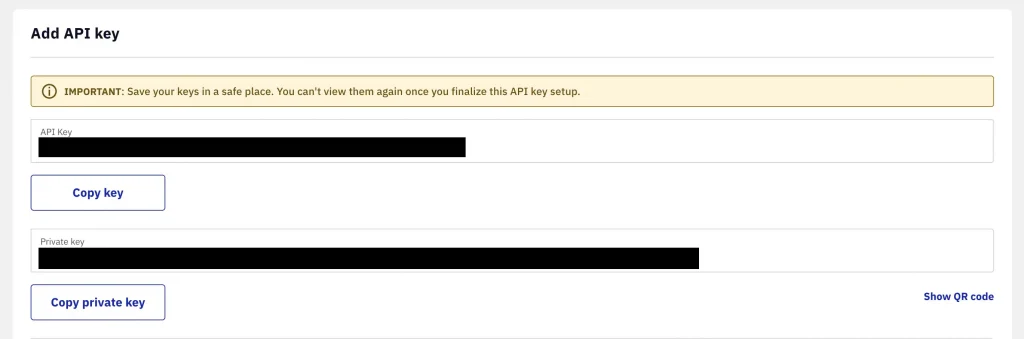 Schritt 4: Nach dem Klick auf “Generate Key” bekommst du den API Key und den Secret Key angezeigt, die in das gewünschte Tool kopiert werden können.