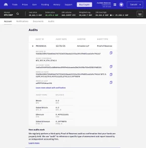 Kraken ermöglicht zudem als einzige Krypto-Börse einen Account Audit durch den Wirtschaftsprüfer Armanino, der einen Nachweis darüber liefert, ob die hinterlegten Bitcoin und Ethereum auch wirklich bei Kraken vorhanden sind. Der Audit ist auch über den Proof of Reserve Explorer von Armanino erreichbar.