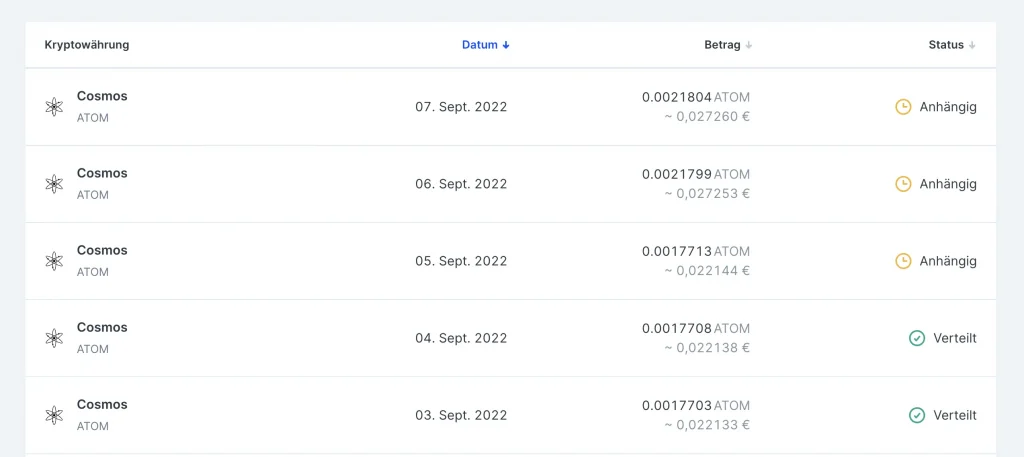 Beispiel: Atom Staking Auszahlung