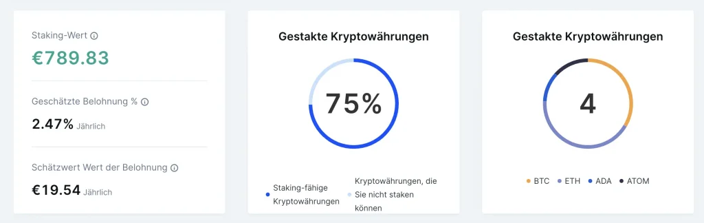 Durch das Staking der Coins kann gleichzeitig vom Wachstum der Kryptowährungen profitiert werden und ein passives Einkommen aufgebaut werden. Die Auszahlung der Rewards erfolgt wöchentlich.