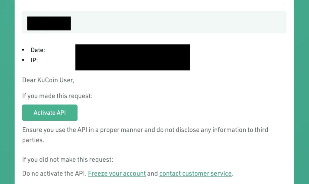 Schritt 4: Nachdem der API Schlüssel erstellt wurde, wird dir eine E-Mail von KuCoin zugesendet, die bestätigt werden muss.