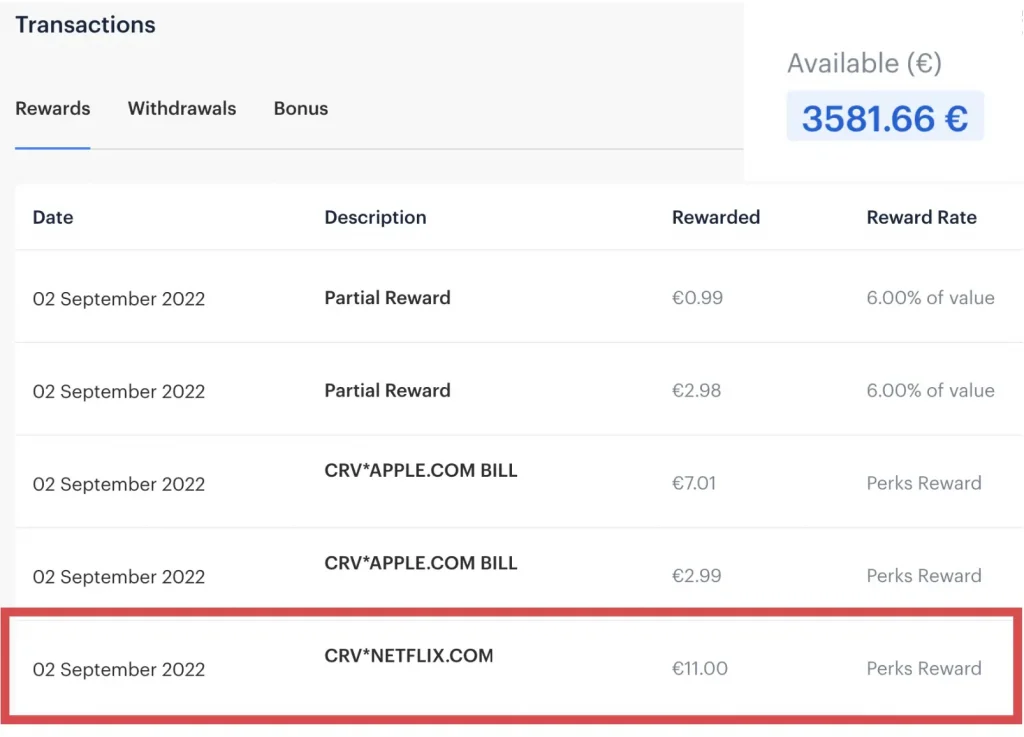 Schritt 1: Für jede Zahlung mit der Plutus Karte erhältst du grundsätzlich 3 % Cashback, auch für Zahlungen bei Netflix. Sollte dein Netflix Abo über dem maximalen 10 € Cashback Rabatt bei Plutus liegen, gibt es für jeden Cent, der über den 10 € liegt, nochmal weitere 3 % Cashback.