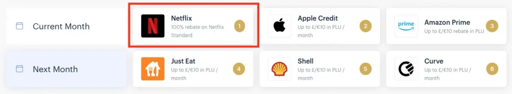 Schritt 2: Wähle im nächsten Schritt in deinem Plutus Account den Netflix “Perk” aus, um den Cashback-Booster zusätzlich zum normalen Cashback zu erhalten.