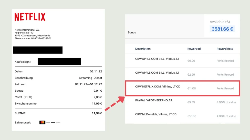 Hier der Beweis, wie wir jeden Monat 10 € Rabatt als Cashback für unser Netflix Abo bekommen: