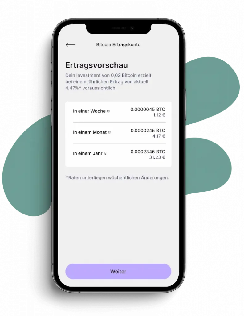Die Zinsen werden wöchentlich jeden Montag in Bitcoin ausgezahlt. Die Auszahlungen landen direkt in deiner Bitcoin Wallet. Die Höhe der Zinsen ist flexibel und richtet sich nach der aktuellen Marktnachfrage für Kredite.