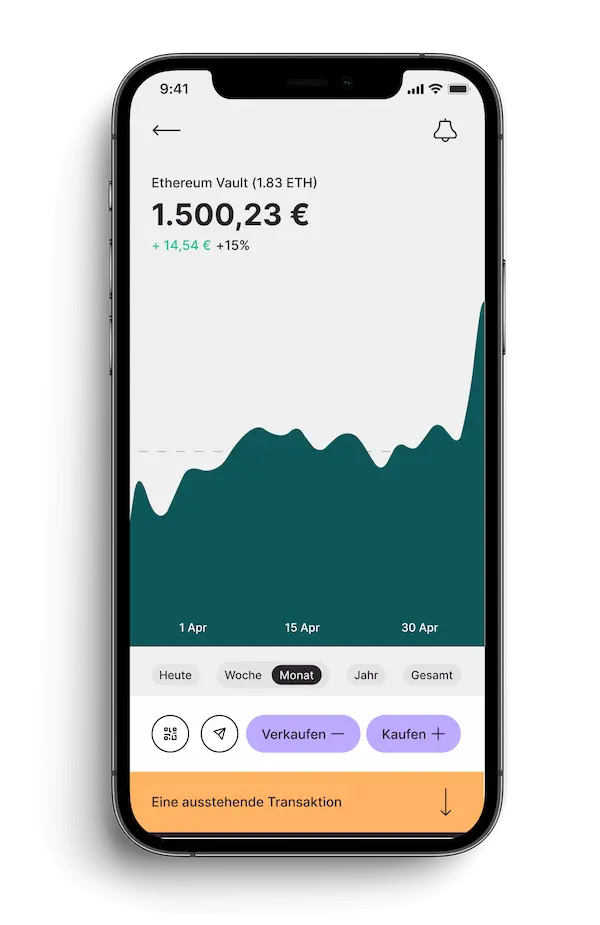 Um Kryptowährungen bei Nuri kaufen zu können, gehst du über den Menüpunkt „Vermögen“ in der Nuri App. Hier hast du die Wahl, die Kryptos entweder von deiner Wallet oder deinem Vault aus zu kaufen. Bei den Krypto Wallets handelt es sich um Wallets, die von Nuri für dich verwaltet und die Kryptos von Nuri aufbewahrt werden. Bei den Krypto Vaults hingegen hast nur du den Zugang und die Schlüssel, um darauf zugreifen zu können.