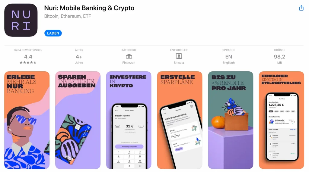 - Über Nuri kannst du ein normales Girokonto mit Visa Debitkarte führen, Bitcoin und Ethereum kaufen und in ETFs investieren.
