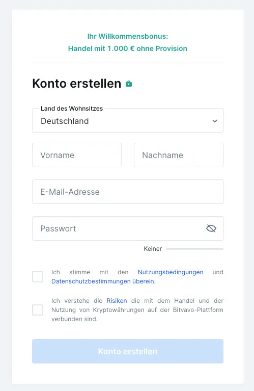 - Schritt: Konto bei Bitvavo eröffnen – Einfach auf Bitvavo gehen und anmelden. Eine Identifizierung per Video-Ident ist nicht erforderlich.