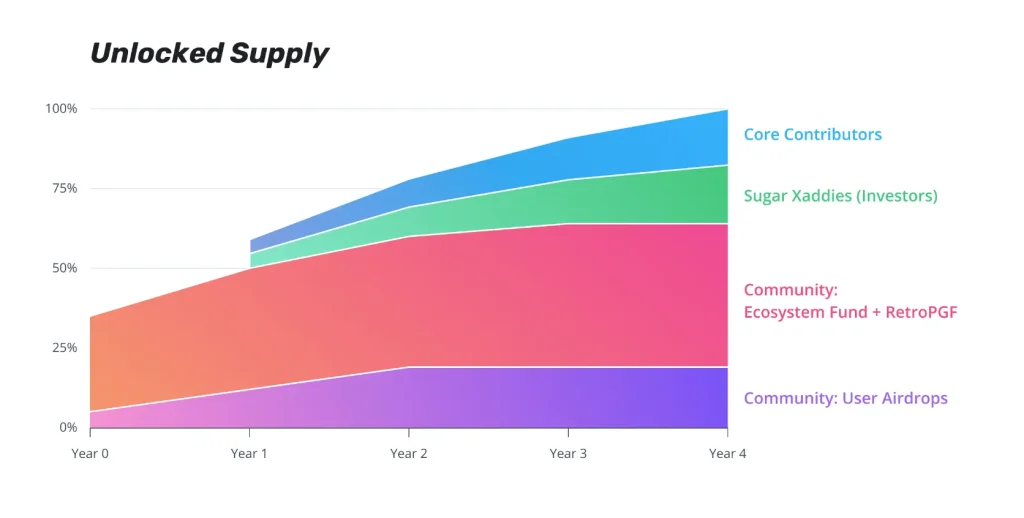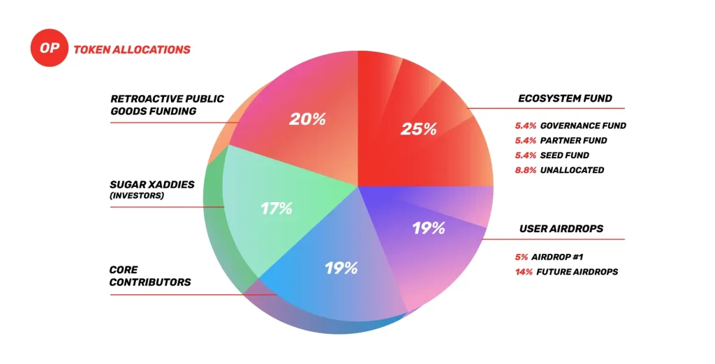 - Die Token verteilen sich zu 25% auf den Ecosystem Fund, der neue Projekte auf Optimism fördern und unterstützen soll.