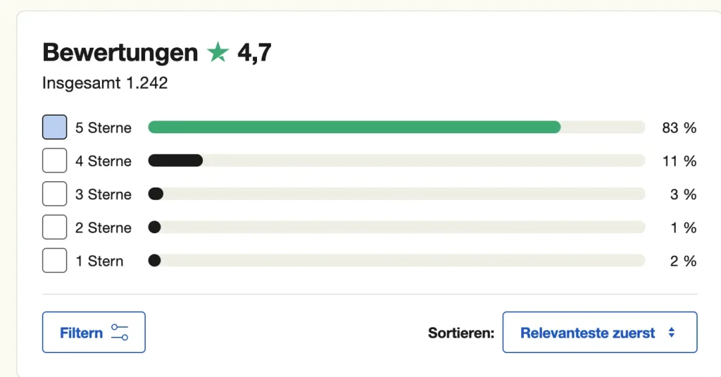 Bei Oskar selbst und dem Angebot Oskar VL handelt es sich um ein seriöses Angebot. Dies spiegelt sich nicht nur in den erfahrenen Gründern wider, die bereits seit Jahren im Finanzmarkt tätig sind und zuvor das Finanzportal Finanzen.net mit aufgebaut haben, sowie in den seriösen Partnern wie der Baader Bank und Scalable Capital, sondern auch in den Kundenbewertungen. So wird Oskar auf der Bewertungsplattform Trustpilot von den Nutzern mit sehr guten 4,7 von 5 Sternen bewertet.