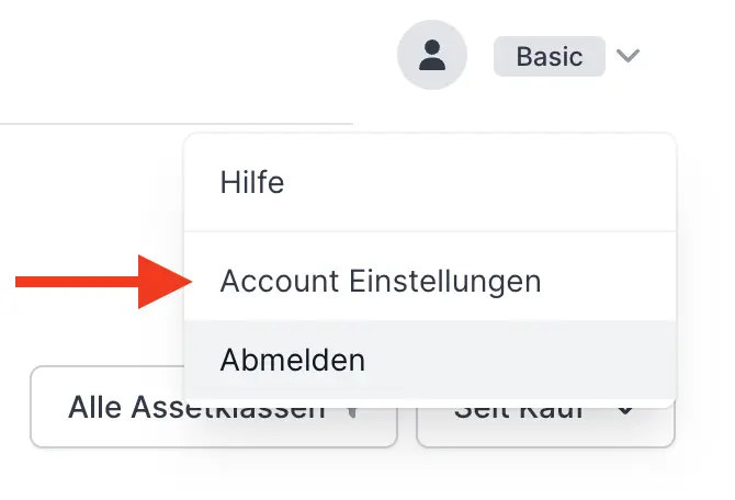 Schritt 1: Gehe in deinem Parqet Konto auf „Account Einstellungen“.