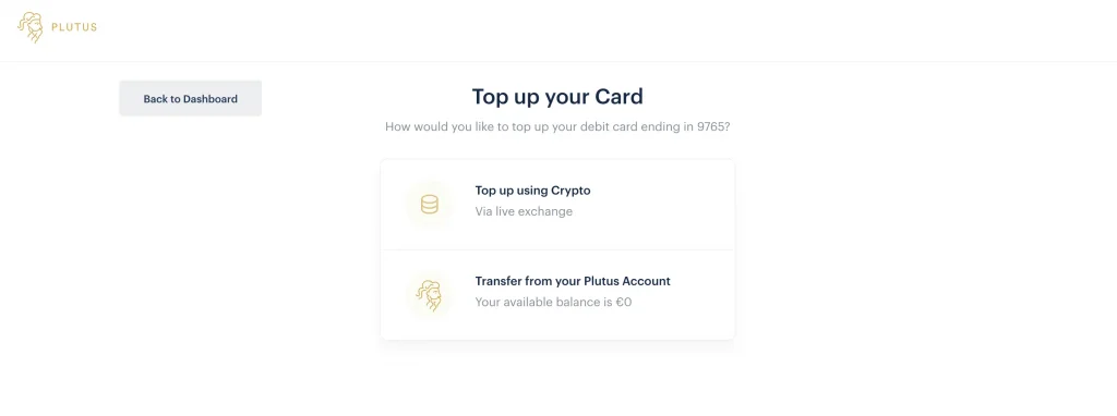 Du kannst die Karte alternativ auch direkt mit Ethereum oder Pluton von deiner Metamask Wallet aufladen.