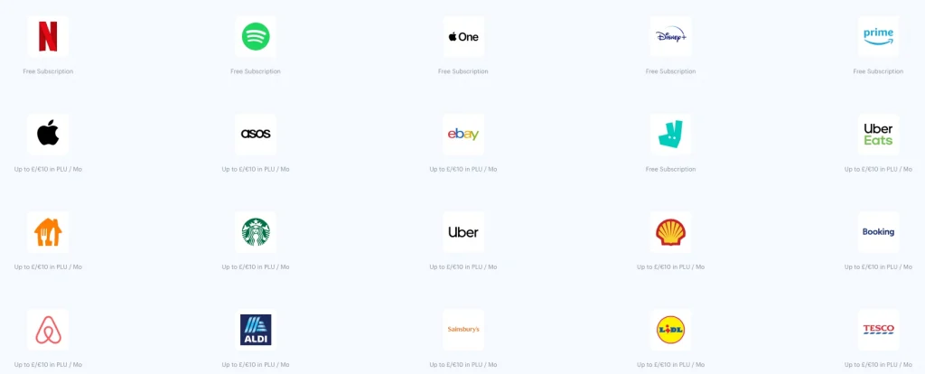 Plutus in eine Krypto-Banking App aus Großbritannien, die dir eine kostenlose Kreditkarte mit Cashback Vorteilen bietet. Damit kannst du bis zu 8 % Cashback und bis zu 8 weitere Vorteile wie ein kostenloses Abonnement für Netflix, Spotify und Amazon Prime erhalten. Insgesamt steht dir eine Auswahl aus über 20 zusätzlichen Cashback-Rabatten zur Verfügung, die du jeden Monat neu auswählen kannst.