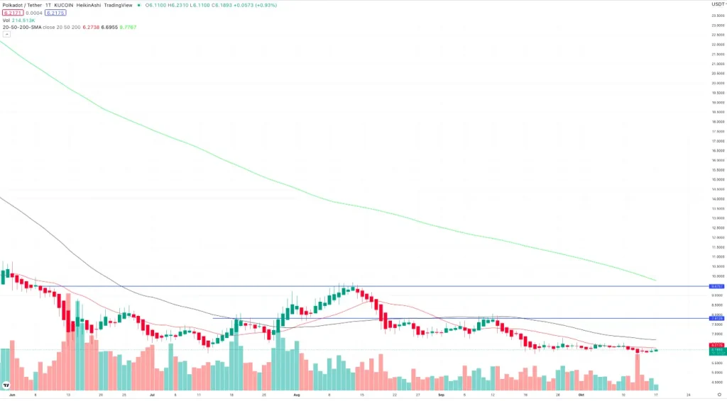 - 5 Analysten haben eine Polkadot Prognose für 2025 abgegeben. Die durchschnittliche Polkadot Kursprognose der Analysten beträgt 12,37 €. Das ist 82,18% höher als der aktuelle Polkadot Kurs. Das höchste Kursziel der Analysten liegt bei 24,60 € (262,30 %), das niedrigste bei 6,61 € (-2,61 %). Auf Grundlage der Analystenschätzungen wird Polkadot zum kaufen empfohlen.