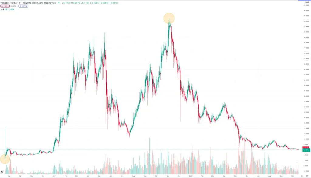 - Das Allzeithoch für Polkadot war 47,60 €. Basierend auf dem Allzeithoch beträgt das mögliche Kurspotential von Polkadot 601,03%.