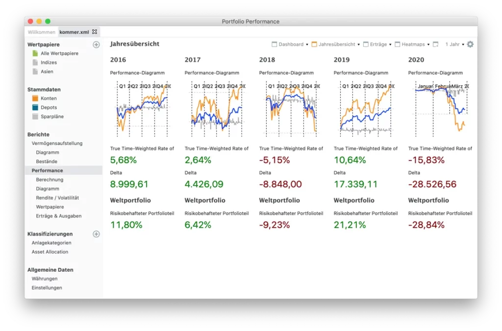 - Die Portfolio Performance messen sowie die Entwicklung deiner Investments auf einfache Art und Weise zu verfolgen und Gewinner und Verlierer zu identifizieren ist entscheidend, um Optimierungspotenziale zu erkennen.