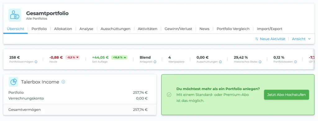 ExtraETF ist in seiner kostenlosen Version begrenzt, und einige Features sind nur in der Premium-Version verfügbar. Zudem sind die Analysefunktionen begrenzt und es fehlt teilweise an der Übersicht. Als Alternative zu ExtraETF kann Parqet* in Erwägung gezogen werden. Einen detaillierten Vergleich der führenden Portfolio Tracking Apps findest du hier.