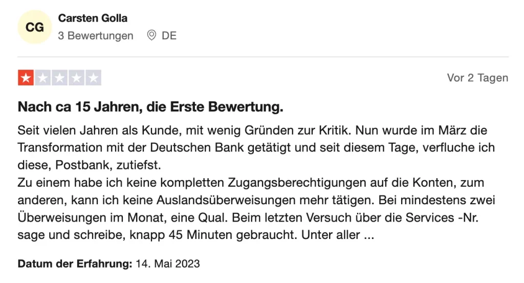 Die Postbank hat auffällig schlechte Bewertungen auf Bewertungsportalen wie Trustpilot. Insbesondere im Zusammenhang mit dem Girokonto und der Übernahme durch die Deutsche Bank scheint es für viele Kunden nicht mehr rund zu laufen.
