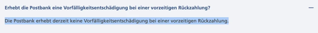 Wie hoch ist die Vorfälligkeitsentschädigung bei der Postbank?