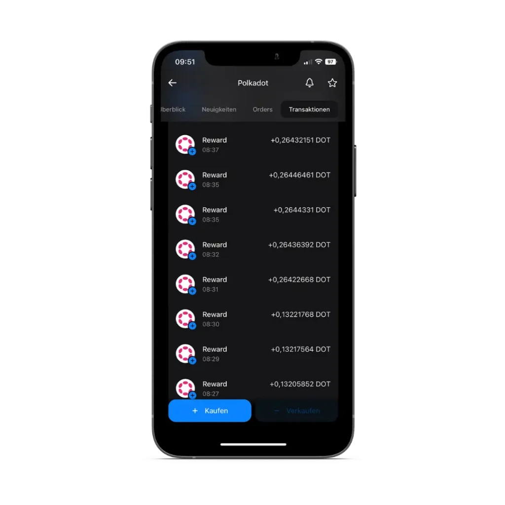 Schritt 3: Nach erfolgreichem Bestehen des Krypto-Quiz bekommst du die Coins auf dein Krypto-Vault gutgeschrieben.
