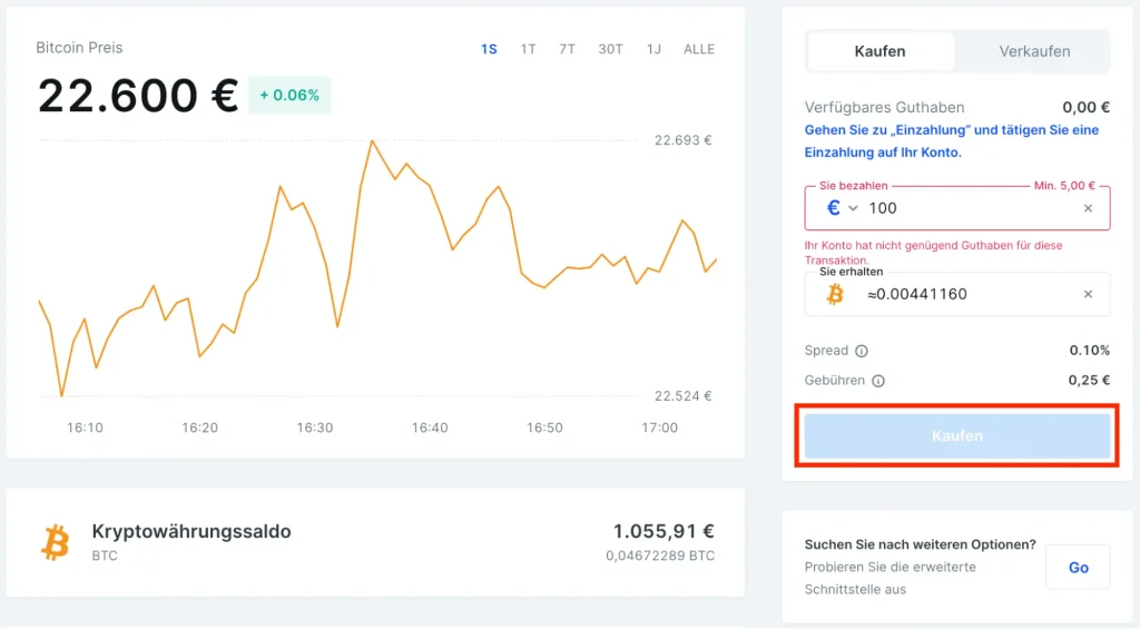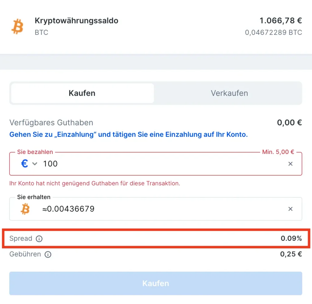 | Spread (Beispiel Bitcoin) | ca. 0,21 % | 0,03 % |
