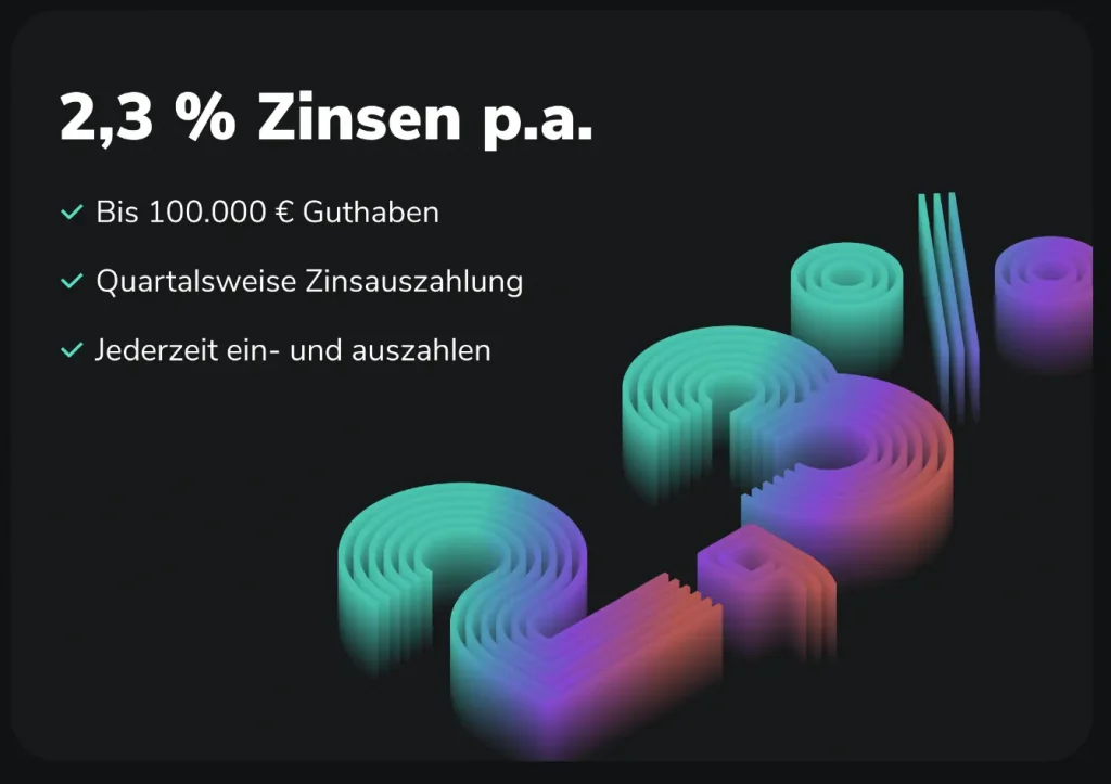 - Keine Werbeaktion: Die Zinsen auf Guthaben sollen dauerhaft für Neu- und Bestandskunden verfügbar sein