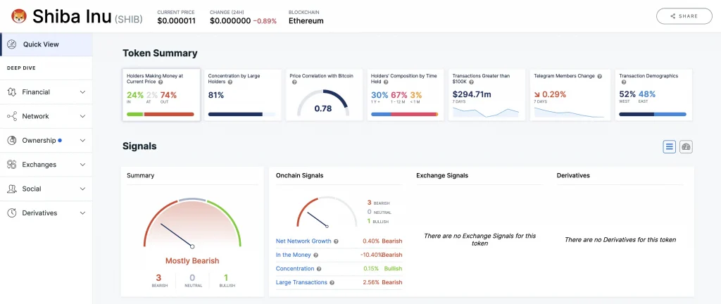 - Der Fear and Greed Index für Shiba Inu liegt bei 70, d.h. die vorherrschende Marktstimmung von Anlegern für Shiba Inu ist auf Basis der Marktdynamik, Volatilität und anderen Signalen Neutral.