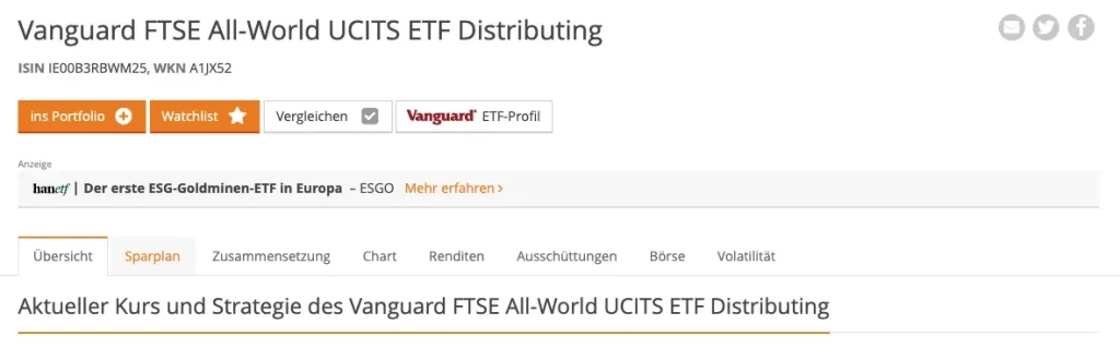 Schritt 4: Richte einen ETF Sparplan für das Kind ein. Wir empfehlen für den langfristigen Vermögensaufbau des Kindes einen breit gestreuten Welt-ETF wie den Vanguard FTSE All-World.