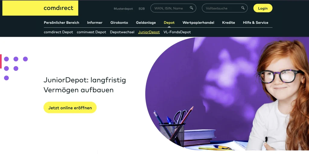 - Die besten Anbieter findest du in unserem Junior Depot Vergleich. Unsere Testsieger sind die Comdirect* und OSKAR*.
