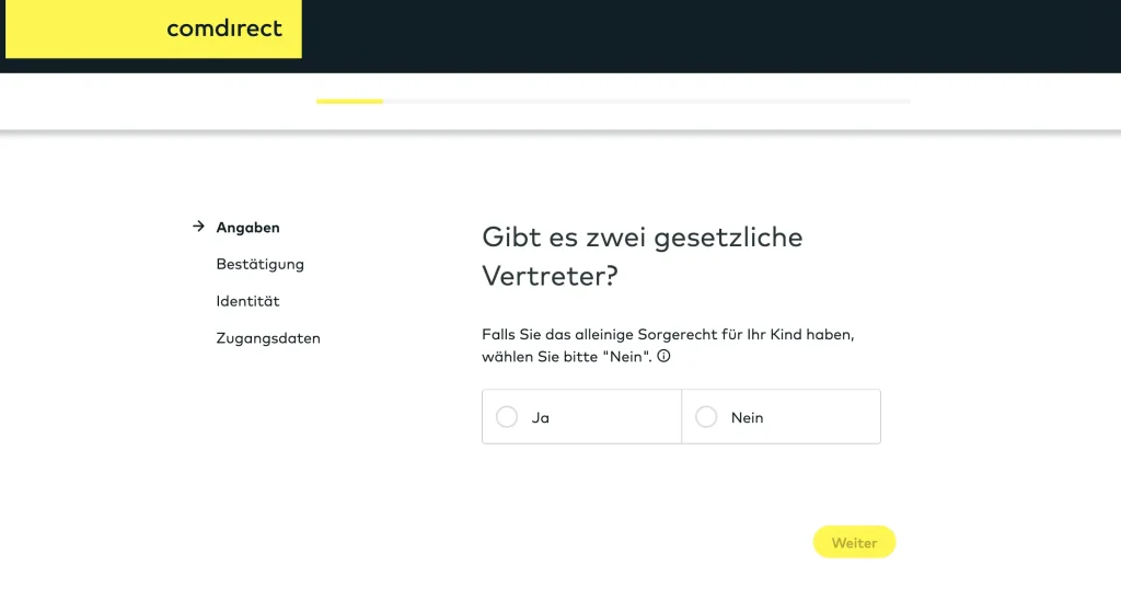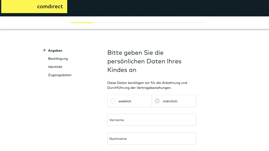 Schritt 2: Beantworte die Fragen der Comdirect und trage die Daten deines Kindes sowie deine eigenen Daten ein.