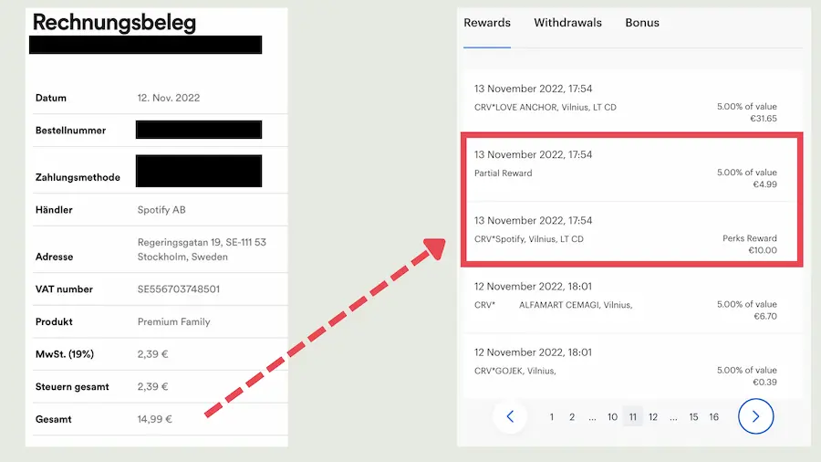 Hier der Beweis, wie wir jeden Monat 10 € Rabatt für unser Spotify Abo bekommen + zusätzliches Cashback verdienen: