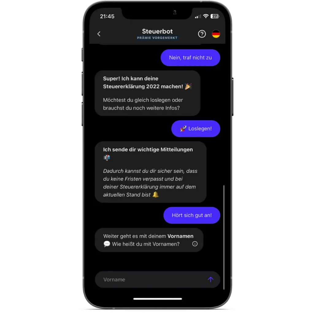 - Steuerbot ist eine App, die dir bei der Erstellung der Steuererklärung hilft.