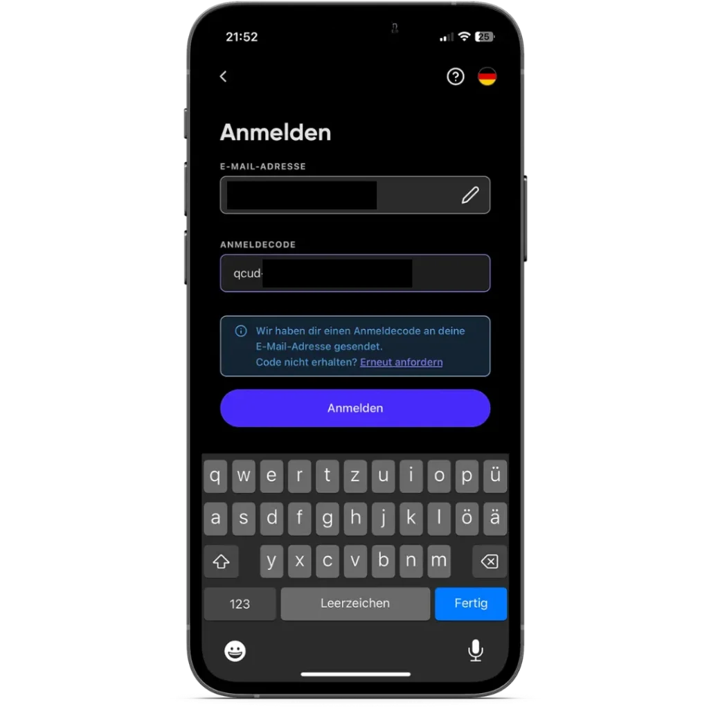 Schritt 3: Melde dich jetzt mit der E-Mail-Adresse, mit der du dich registriert hast, bei Steuerbot an. Du erhältst dann per E-Mail einen Anmeldecode, der als Login-Passwort dient.