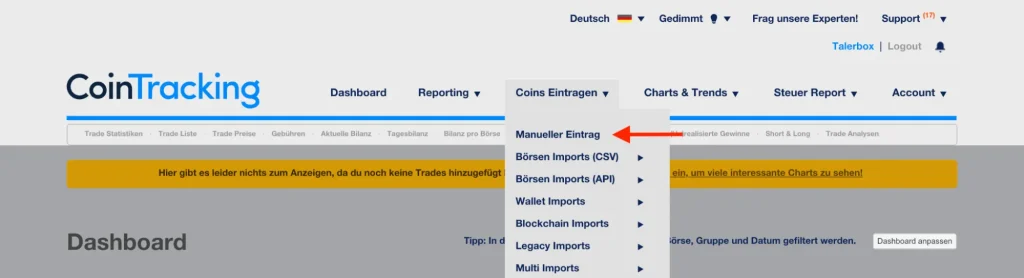 - Importiert die Transaktionen für dich in deinen Cointracking Account