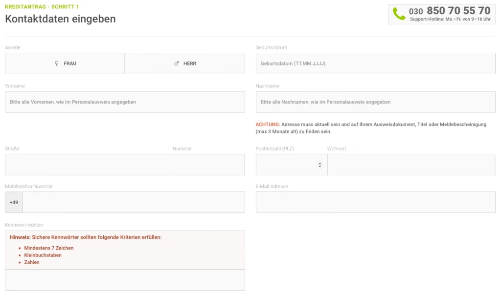 Telefonnummer und E-Mail sind wichtig, da Vexcash dir hierüber wichtige Kredit- und Zahlungsinformationen zusendet. Nutze deshalb unbedingt deine echten Kontaktdaten, da du sonst den Kredit nicht abschließen kannst.
