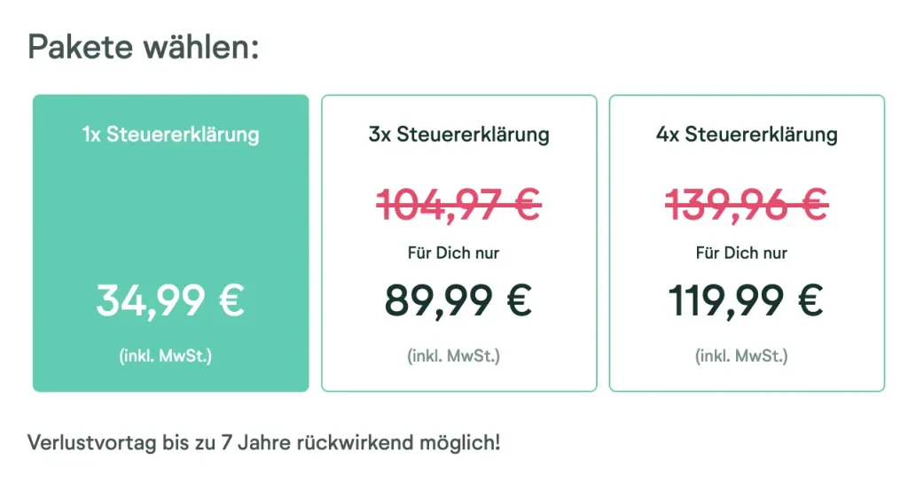 Noch mehr sparen? Das geht ganz einfach mit dem Paketrabatt von Wundertax. Für 3 Steuererklärungen zahlst du hier nur 89,99€ statt 104,97€ (15% Rabatt) oder 4 Steuererklärungen für 119,99€ statt 139,96€ (15% Rabatt). Da das Thema Steuererklärung jedes Jahr aufs Neue ansteht, kannst du so zusätzlich zum Wundertax Rabattcode „Talerbox“ noch einmal sparen.